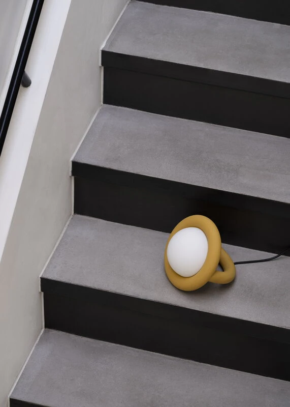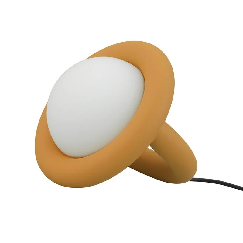 AGOn Balloon-pöytävalaisin ilahduttaa esimerkiksi yöpöydällä, toimistossa tai lastenhuoneen valaisimena. Sen persoonallisen graafinen siluetti syntyy pyöreän opaalilasivarjostimen ja sitä kiertävän, maalatusta alumiinista valmistetun rungon yhdistelmästä. Tyylikkään kokonaisuuden viimeistelee mattamusta johto.