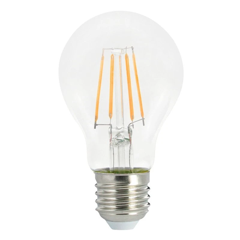 Kirkaskupuisen A60-filamenttilampun valonlÀhteinÀ toimivat miellyttÀvÀÀ, lÀmpimÀn valkoista valoa hehkuvat LED-nauhat. Filamenttilamput sopivat erityisesti kristallikruunuihin ja ympÀrisÀteilevÀn valonjaon ansiosta myös plafondeihin ja pöytÀvalaisimiin.