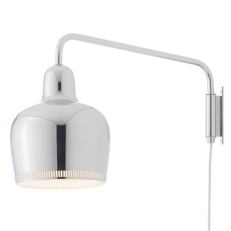 Artekin seinävalaisin A330S mukailee Alvar Aallon Golden Bell eli Kultakello-riippuvalaisinta, joka suunniteltiin alkujaan maineikkaaseen ravintola Savoyhin vuonna 1937. Tässä elegantissa pienessä valaisimessa yhdistyvät Alvar Aallolle tyypillinen hallittu muotokieli sekä valon siivilöityminen valaisimen läpi. Seinävalaisin A330S:n vartta voi kääntää 180 asteen kulmassa, ja se sopii loistavasti esimerkiksi lukuvaloksi, työvaloksi tai yleisvalaistuksen tunnelmalliseksi täydentäjäksi.