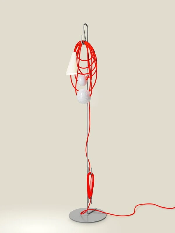 Foscarinin Filo-sarjan valaisimet on nimetty kaukaisten kaupunkien ja arvokkaiden jalokivien mukaan – osuvaa, sillä Filo-lattiavalaisin on kuin eksoottinen koru itsessään. Andrea Anastasion suunnittelema valaisin hätkähdyttää katsojaansa epäsäännöllisellä ulkonäöllään. Valaisin on hajotettu osiin ja koottu sen jälkeen yhteen ainutlaatuisella, lähes sääntöjä rikkovalla tavalla. Päärooliin nousee värikäs tekstiilijohto, joka on jätetty huolettomasti näkyville. Johtoon on kiinnitetty päällekkäin kaksi suupuhallettua lasikoristetta, jotka tuovat lattiavalaisimen ilmeeseen kontrastia ja sävyjä. Sytytettynä valaisimen posliinivarjostin hehkuu pehmeästi ja kodikkaasti, mutta myös valot sammutettuna Filo herättää huomion ja kutsuu luokseen katsomaan.