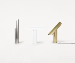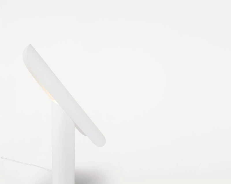 Framan T-Lamp on muotoilustudio Regular Companyn arkkitehtoninen versiointi klassisesta työpöytävalaisimesta. T-Lamp on yksinkertaisesta muodostaan ja siihen viittaavasta nimestään huolimatta yllättävän monipuolinen valaisin: se on paitsi himmennettävä, myös muunneltava, sillä sen varjostinta on mahdollista kääntää jalustan suuntaisesti – näin sekä itse valaisimen ilmettä että sen tarjoamaa valaistusta on helppo muokata erilaisiin tiloihin ja tarkoituksiin sopiviksi. Pelkistetty pöytävalaisin on valmistettu jauhemaalatusta teräksestä, jonka valkoinen sävy toimii viittauksena perinteisiin työpöytävalaisimiin.