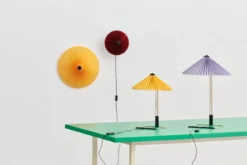 HAYn Matin 500 -valaisin ihastuttaa herkkyydellään. Inga Sempén suunnittelemassa valaisimessa on metallista muotoiltu kiinnike, jonka peittää siro, kauniisti laskostettu puuvillavarjostin, jota on saatavilla niin kirkkaissa kuin tunnelmallisissakin sävyissä. Seinään tai kattoon kiinnitettävä Matin on klassisen kaunis katseenvangitsija modernilla twistillä, ja se luo pehmeää valoa sekä kodikasta tunnelmaa niin olohuoneeseen, makuuhuoneeseen kuin julkisiinkin tiloihin.