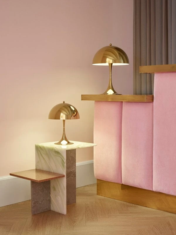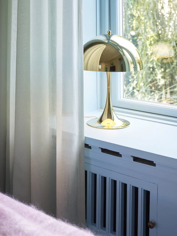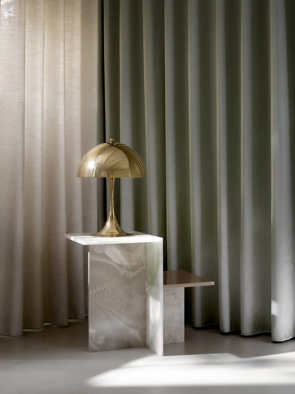 Alun perin vuonna 1971 julkaistu Panthella on yksi suosituimmista Verner Pantonin suunnittelemista tuotteista. Panthella-valaisimen valonlähde sijaitsee puolipallon muotoisen varjostimen sisäpuolella, ja sen trumpetin muotoisesti levenevä jalka antaa valaisimelle paitsi veikeän ja tasapainoisen ilmeen, myös oman lisänsä valon sävyyn. Metallista valmistetussa versiossa valo suuntautuu suoraan alaspäin ja heijastuu kauniisti valaisimen messingin sävyisen jalan pinnasta. Panthella on säilyttänyt asemansa klassikkona, ja vuosien varrella valaisinperhe on täydentynyt uusilla malleilla ja väreillä.