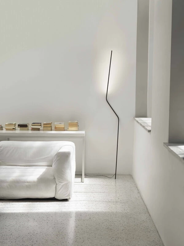 Nemon Neo-lattiavalaisin hurmaa täydellisellä koruttomuudellaan – tämän minimalistisempi ei valaisin voisi ollakaan! Bernhard Osannin suunnittelema valaisin muodostuu sirosta, hieman kulmikkaasta metallirungosta ja sen päähän pitkittäin piilotetusta LED-valonlähteestä, jonka voi suunnata haluamaansa kohtaan joko suoraa tai epäsuoraa valaistusta luomaan. Valaisin asetetaan lepäämään seinää vasten, ja siinä on kätevä lattiakatkaisin, josta valaistusta voi myös himmentää.