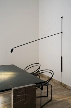 Swan-seinävalaisimen pitkä varsi näyttää upealta niin työpöydän kuin ruokapöydänkin yllä, ja sen siro, veistoksellinen siluetti elävöittää myös olohuoneen tai aulatilan sisustusta. Valaisimen kokonaispituus on kokonaiset 184 cm.