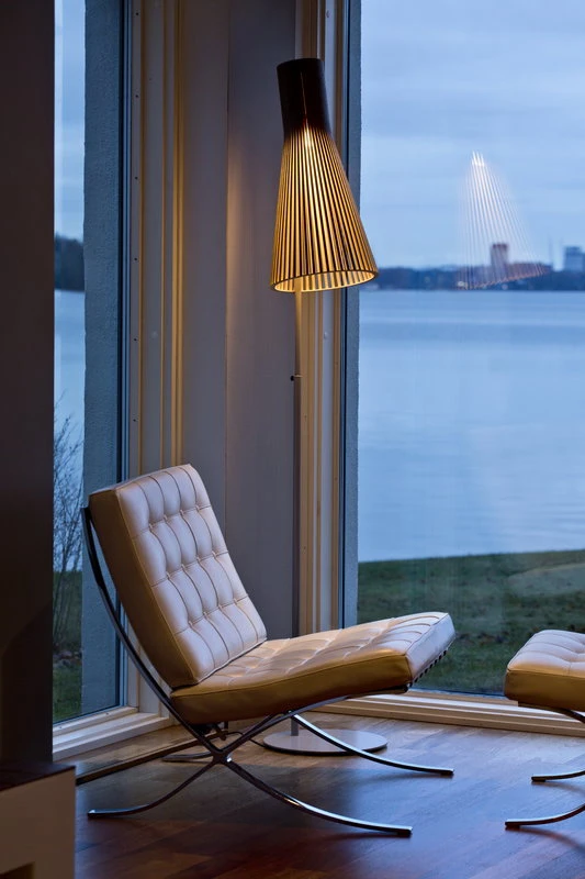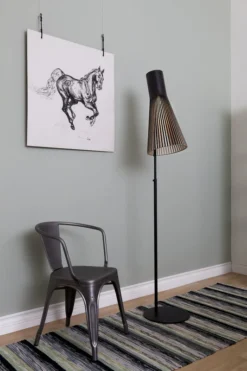 Secto 4210 on elegantti lattiavalaisin, jonka ilmava puuvarjostin luo ympärilleen lempeää valoa. Säädettävällä varrella varustettu valaisin on oiva kumppani esimerkiksi nojatuolin tai työpöydän kupeeseen.