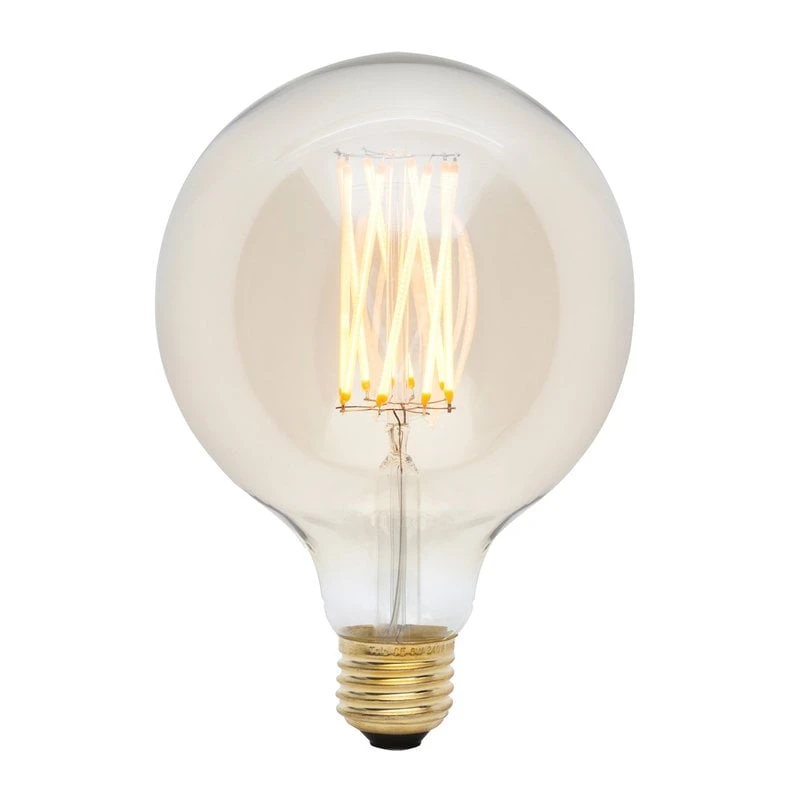 Niin riippuvalaisimeksi kuin pöytävalaisimen lampuksi sopiva, suurikokoinen Gaia 6W LED-lamppu kääntää katseet ja luo ympärilleen tunnelmallista valoa pyöreän muotonsa ja sävytetyn lasin läpi loistavien hehkulankojen ansiosta. Puhalletusta lasista valmistetun lampun ilme jäljittelee perinteisten hehkulamppujen estetiikkaa tämän päivän LED-teknologiaan päivitettynä.