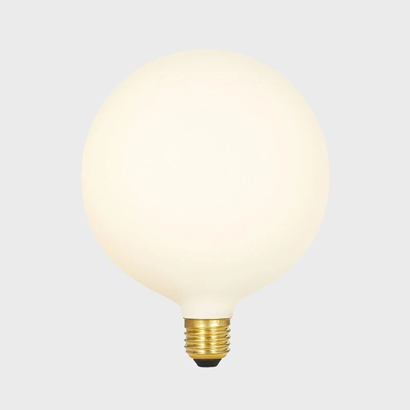 Mattavalkoinen, pallonmuotoinen Sphere IV on Talan Sphere-lampuista suurikokoisin, halkaisijaltaan huikeat 15 cm. LED-lampun kanta on perinteinen E27, eli se sopii monenlaisiin valaisimiin – muistathan kuitenkin ottaa huomioon polttimon tavallista suuremman koon.