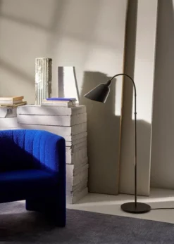 Pronssatulla messingillä viimeistelty Bellevue AJ7 -lattiavalaisin kuuluu &Traditionin 120th Anniversary Edition -kokoelmaan, joka juhlistaa Arne Jacobsenia ja tämän vaikutusta tanskalaiseen designiin.