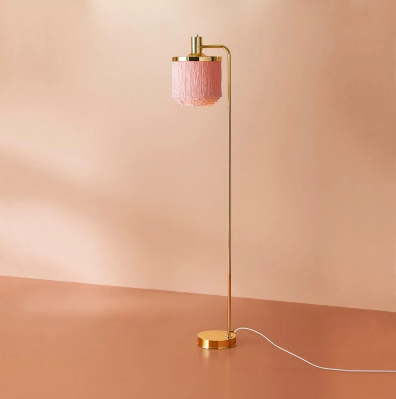 Fringe-valaisimen elegantti olemus muodostuu messingin ylellisestä hohdosta ja hempeän vaaleanpunaisista hapsuista, joiden väleistä valo siivilöityy pehmeästi luoden ympärilleen lempeän ja miellyttävän valaistuksen. Fringe täydentää upeasti vintage-henkistä, romanttista sisustusta nojatuolin tai sohvan viereen asetettuna, mutta sopii mainiosti myös modernimpaan tyyliin tuomaan sisustukseen ripauksen leikkisää eleganssia.